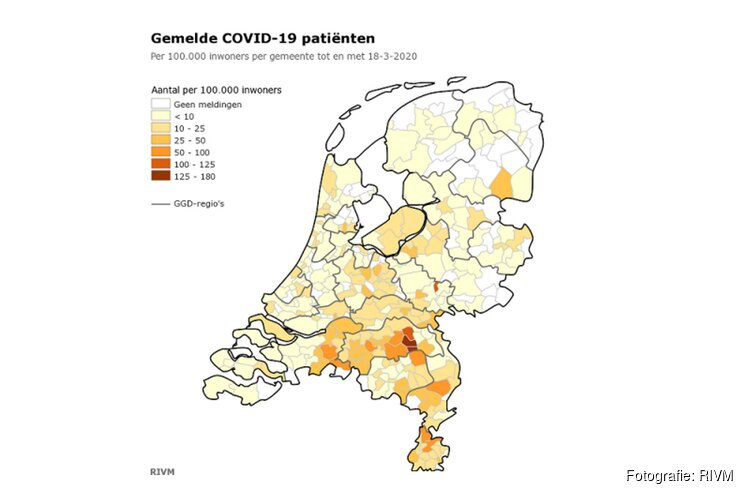 RIVM kaartjes werden aangepast van alarmerend oranje naar koel blauw. Ook wat geteld ging worden werd aangepast van vastgesteld besmette mensen naar opgenomen patiënten.